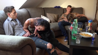 Přijďte dnes večer k nám. Pořádáme pravé české domácí orgie. Vstup zdarma! Všeho nechte a přijďte si pořádně zamrdat. Potetovaná rebelka si ráda strká čuráky až do krku, aby je pak mohla krásně opíchat. Každá holka na téhle párty má v puse čuráka. Slyšíte to božské ticho? Slyšet je jen mlaskání mokrých kundiček, který si navzájem lížou dvě úžasný modelky. Libová kočička s přírodníma kozama si užívá v koupelně parádní šukání. Nádherný kozy! Tak tomu říkám parádní mejdan, kurva!